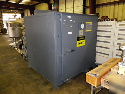 USED DRUM WARMING OVEN WITH AGITATOR. INSIDE MEASURES 59" X 55" X 48". THERE ARE 5 PIPES STICKING OUT OF THE BACK((4) 1 1/4", AND (1) 4 5/8".