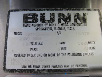 Bunn coffee brewer airpot 3.8 gallon model CWTF15-aps