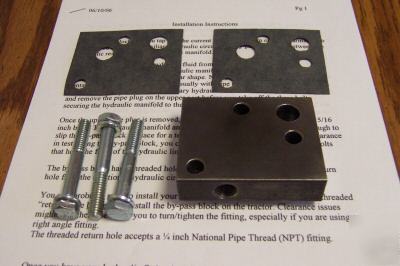 The by-pass block comes with mounting bolts, installation instructions and 2 gaskets. Fits a Farmall Cub.