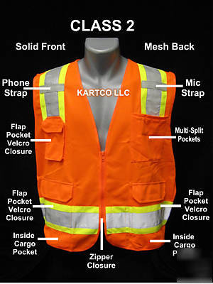 > Radians class 2 mesh back multi- pocket vest org-4XL