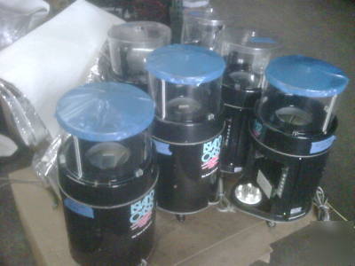 The clear hopper on top is NEW. This comes with 1 blender cup. It also comes with a new measuring cup and hose. All of the working parts...motors, belts and bearings have been replaced. It has everything you need to start serving drinks!