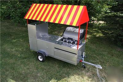 The steel canopy is red and yellow but it can be painted with color(s) of your choosing. Both sides are bended to deviate the water to the sides in case of rain. If you wish to have the cart without the canopy you can take 300 dollars off the total price.