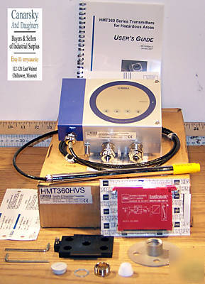 THIS LOT CONSISTS OF:1 NIB VAISALA HUMIDITY AND TEMPERATURE TRANSMITTER HMT360HVS. HMT365 A11BAH2B1BH2A3D1. NEW IN BOX, THE HMT360 SERIES TRANSMITTERS ARE MICROPROCESSOR BASED TWO-WIRE TRANSMITTERS FOR MEASURING RELATIVE HUMIDITY AND TEMPERATURE IN HAZARDOUS AREAS REQUIRING EX CLASSIFICATION. ADDITIONAL SPECS AND INFO AT http:// /instruments/products/hf-hmt360.html. CONDITION: NEW SURPLUS.