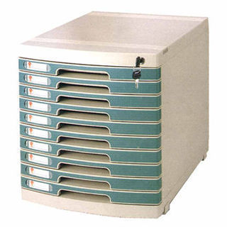 - This is a desktop size and an elegant plastic file cabinet with 10 drawers and a lock.