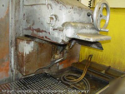 EQUIPPED WITH: This is a Heavy Duty 'Die Block' Style Surface Grinder with the 'Newer' Style Squared Off Box Type Column, Auto Recip & Crossfeed, Power Operated Raising & Lowering of Wheel Head, (2) 24" x 30" Hitachi Electro Magnetic Chucks, Above the Wheel Dresser, Travatrol Electronic Cross Feed, Trabon Automatic Lubrication System, Coolant System w/ Barnes Magnetic Seperator.