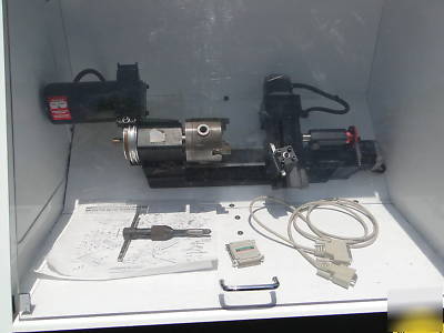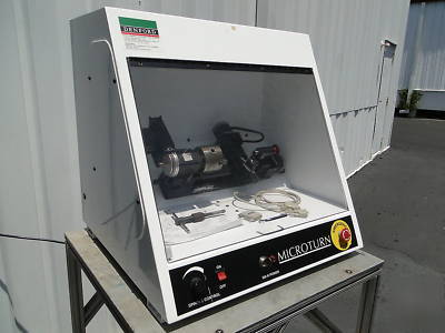 * Machine is mounted in a excellent cabinet 27x26x27 with safety shield front. it also has a light inside mounted above the lathe so you can see what you are doing.