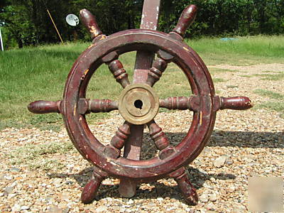 > Vintage old wooden sailboat boat spoked wheel 0696