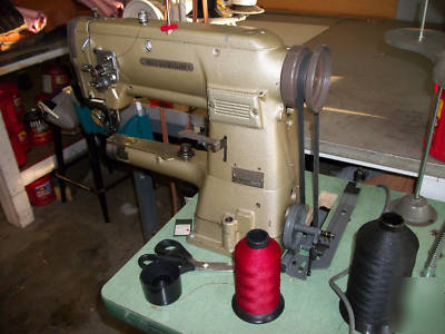 Used machine, recently reconditioned Industrial Mitsubishi CU 865 cylinder arm sewing machine and table - complete.