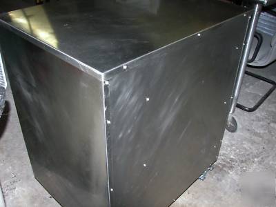 * THIS HEATING AND HOLDING CABINET HAS MANY NICE FEATURES: IT IS 120 VOLTS...IT IS MOBILE WITH FOUR FIVE INCH WHEELS (2 WITH LOCKS)...EACH DRAWER HAS ITS OWN HEAT/TEMPERATURE SETTING...EACH DRAWER HAS ITS OWN HOT/MOIST OR HOT/CRISP SETTING...EACH DRAWER HOLDS A FULL SIZE, SIX INCH DEEP FOOD PAN (CAPACITY 21 QUARTS), BUT YOU CAN REPLACE THESE WITH HALF OR ONE THIRD SIZE PANS AS YOUR NEEDS REQUIRE...FILL IT IN THE KITCHEN AND ROLL IT WHERE YOU WILL NEED IT. JUST PLUG IT IN AND IT WILL HOLD FOODS AT TEMPERATURE UNTIL SERVING TIME...STAINLESS STEEL FOR DURABILITY AND EASE OF CLEANING...AND, ITS A HATCO (AN OUTSTANDING NAME IN COMMERCIAL FOOD SERVICE EQUIPMENT).
