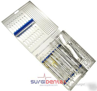 11. Sterilization Cassette 7" W x 8" L x 1.25" H (The Cassette is Double Hinged so the top is able to fold back Cassette has Silicone saw tooth on bottom and "Y" Silicon on top to hold the instruments down Cassette is made from Stainless Steel