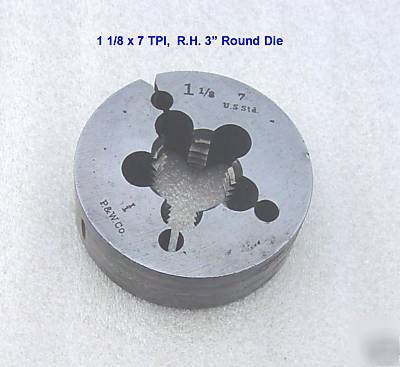 > 1, rh,1 1/8" x 7 tpi,3" round, p & w co. threading die