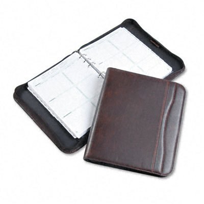 Sienna simulated leather has those extra touches that make this organizer so appealing. Provides a supply of undated daily, weekly and monthly calendar pages to get you started. Includes tabbed monthly dividers and address/phone directory, notepad, reference and information pages, card holder and vinyl zip pouch.