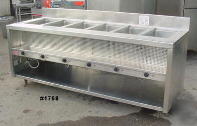 6 INDIVIDUAL WELLS- (HEATING BINS) COMMERCIAL STEAM TABLE, THIS UNIT CAME OUT OF A FAMOUS PASTA AND SPAGHETTI NATION WIDE CHAIN, IT IS IN EXCLENT CONDITION THEY USED IT TO HOLD ALL THEIR DIFFRENT PASTA IN THE KITCHEN. #1768