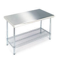 This versatile stainless steel table has an adjustable shelf and curved edges for safety.