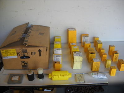 Huge lot of hubbell plugs, receptacles, ballast & more