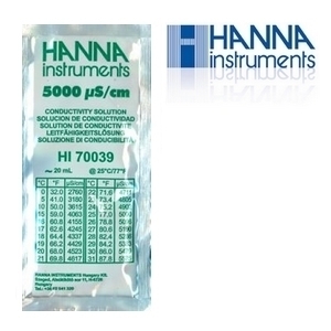 > Hi 70039 conductivity solution,. 5000 µs/cm @ 25°c/77°f