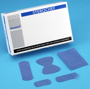 STEROCHEF Assorted Blue Adhesive Plasters Boxed in 100