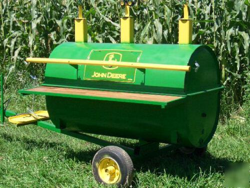 Great John Deere Edition Propane Hog, Deer , Steak,Chicken, Corn, all purpose Cooker!!!!!!!!!!!!You can cook up to a 400 lb Hog or Ox Roast, or just chicken or steaks for the crew. Very adjustable, self cleaning. We have used one for 5 years and its great! Will last a lifetime with min. care. Cooking time for a 300 lb pig is 6-7 hours.Just set it at 350. Watch the grease drain out! No rotating,
